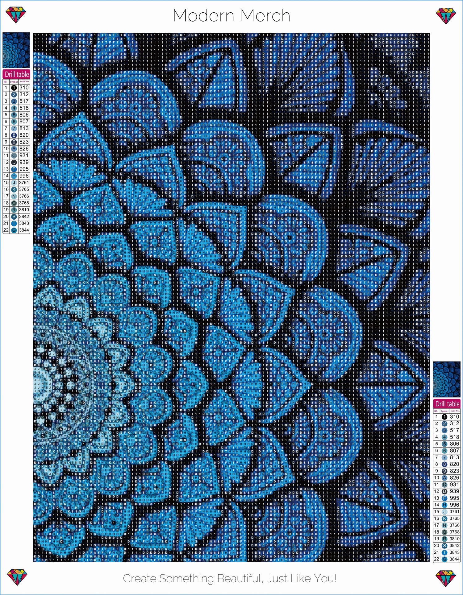 Experience the calming and balanced atmosphere created by our Blue Mandala Diamond Art Kit, designed to bring a sense of tranquility to your surroundings. The intricate design showcases soothing shades of blue, making it an ideal choice for mindful crafting. Plus, when you purchase two kits, you can combine them to create a captivating half-moon mandala, adding another dimension of elegance and harmony to your decor.